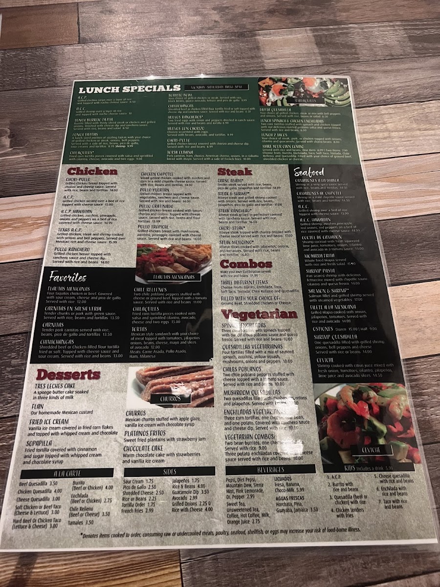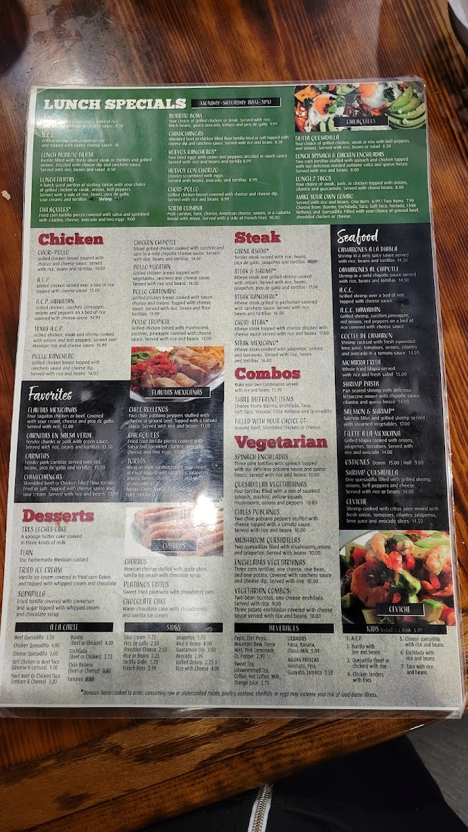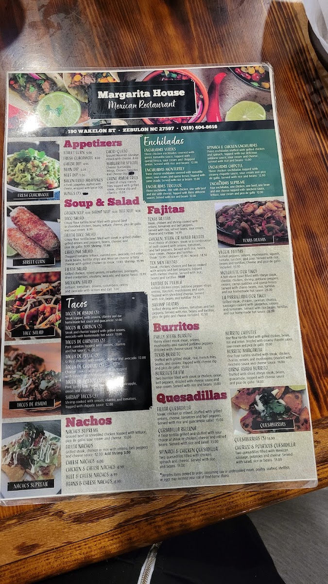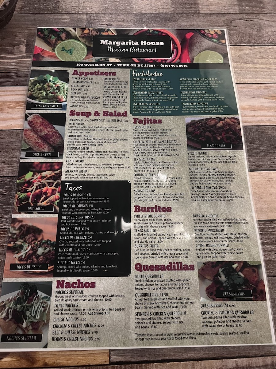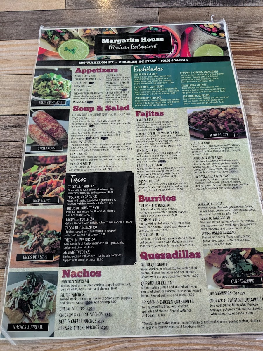 Margarita house bar & grill Menu